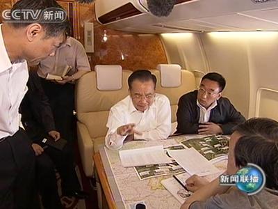 報(bào)道說,一上飛機(jī),溫家寶就和國務(wù)委員兼國務(wù)院秘書長馬凱等總指揮部成員開始研究抗震救災(zāi)工作。溫家寶說,抗震救災(zāi)工作要在繼續(xù)做好搶救被困群眾的同時(shí),把受災(zāi)群眾安置和恢復(fù)重建工作擺在更加突出的位置。在安置受災(zāi)群眾工作方面,目前有三項(xiàng)十分緊迫的任務(wù):一是解決住的問題,二是解決衛(wèi)生防疫問題,三是解決次生災(zāi)害問題;謴(fù)重建工作首先要進(jìn)行科學(xué)周密的論證,在此基礎(chǔ)上做好規(guī)劃。