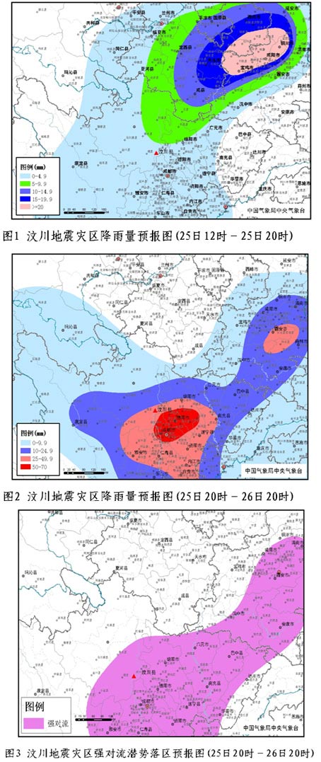 25日下午,四川、甘肅南部、陜西南部等地震災(zāi)區(qū)將出現(xiàn)小雨。四川理縣、汶川、茂縣、都江堰、綿竹的降雨量為1-5毫米;四川北川、青川以及甘肅徽縣、文縣、陜西略陽的降雨量為5-10毫米,并伴有雷電天氣,請注意防范。
