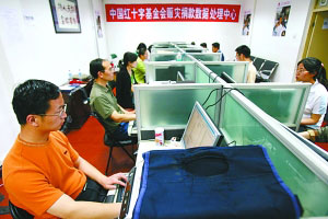 截至昨日,中國紅十字基金會已確認70萬份捐款,“財務部的人手已經從3人增加到30多人,但依照目前的速度,至少還需要1個月才能將目前的所有捐款人確認函發(fā)出”。昨日,中國紅基會秘書長王汝鵬表示。