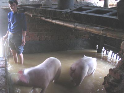 柳元松還顯得有些感激地對記者說,當(dāng)日凌晨3時(shí),他的養(yǎng)豬場的積水就達(dá)到了1.5米深,導(dǎo)致這批快要上市的“出欄豬”有的在豬舍中嗷嗷叫,有的被水沖出了豬舍。面對這一緊急情況,他的10多位會水的男姓鄰居不顧自家被洪水浸泡,紛紛從各自的家中跑出來,游到豬舍中或洪水中去營救將要淹死的生豬。尤其讓他感動的是,因鄰居家的一樓都被洪水浸泡,有幾位男姓鄰居還將從洪水救起的生豬直推趕到自家的二樓,以防被淹生豬再次受寒。