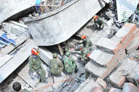 (字幕)當(dāng)綿陽市政府得到消息后,有關(guān)人員在兩小時后趕到北川縣,成立了抗震救災(zāi)前線指揮部。