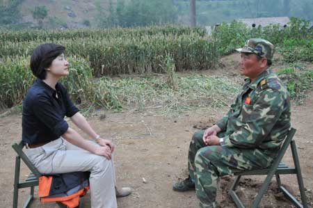 董倩演播室串場:我跟著經(jīng)大忠縣長,從設(shè)在北川中學(xué)的前線指揮部步行到北川的老縣城。在這條路上,不斷能夠迎面遇到從山里面撤出來的,受災(zāi)地區(qū)的群眾。這個時候經(jīng)縣長就會撇下我走上去問,你們從哪來?要撤到哪去?家里的東西帶出來沒有,身上現(xiàn)在還缺點(diǎn)什么?很多人都不知道他是誰。有的人就問,你是誰?這個時候經(jīng)大忠往往不回答。我會替他回答,我說這是經(jīng)縣長,你們的縣長。有個小伙子知道他就是縣長,拍著胸脯說:“縣長你放心,我們行!蔽以谂赃呾o靜地看著,我看著縣長和普通百姓之間的這種一問一答,從中我看到了在經(jīng)歷過這場巨大的災(zāi)難之后,他們之間彼此信任、信賴的這種關(guān)系。而且我也看到了,他們對于未來的那種希望。