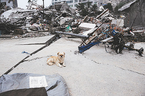 北川已不可能在原址上重建。那一塊塊殘?jiān)珨啾,以及廢墟下一具具永遠(yuǎn)合不上眼睛的亡魂,將成為人類災(zāi)難史上永不磨滅的記憶。那樣的記憶,將會(huì)由人類來共同分擔(dān)。而我最痛悔的是,沒能親自抱一抱那條小狗,我的相機(jī)里也沒留下一張我與它的合影。
