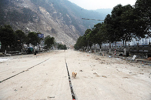 我想和這只小狗合個(gè)影,就以北川這座空空蕩蕩的死城當(dāng)背景:生、死、愛,永恒,在這座死城里融會(huì)貫通。