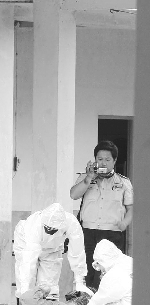 24日,記者見到成都市公安局的法醫(yī)在處理一具無(wú)名遺體。他們先打開裹尸袋,給遺體拍了一張全身照,然后剪開外衣從頭部、上肢到下肢依次檢查,又對(duì)其頭部和右手臂的傷疤分別拍照。