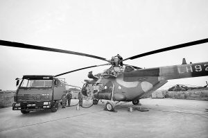 成空某部正為執(zhí)行救援任務(wù)的直升機(jī)加油。劉應(yīng)華攝
