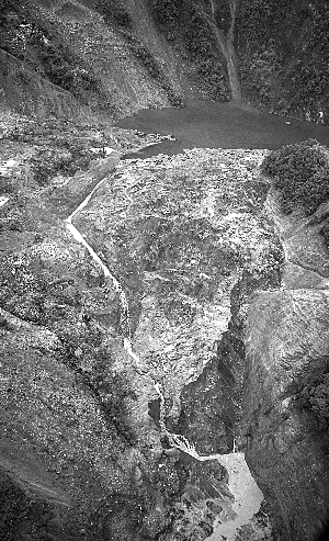俯拍的唐家山堰塞湖泄流情景。昨日7時(shí),唐家山堰塞湖開始泄流。楊衛(wèi)華 攝
