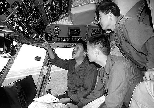 機(jī)長邱光華,51歲,羌族,四川茂縣人。 1957年4月出生,1974年4月入伍,1976年6月入黨,大專文化,大校軍銜,四種氣象飛行指揮員、副師職特級飛行員,近年多次執(zhí)行軍事演習(xí)、衛(wèi)星回收和搶險救災(zāi)等重大任務(wù),總飛行時間5800多小時,榮立二等功2次,三等功4次。