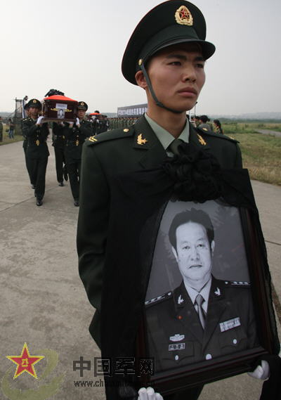 今天上午10時(shí)30分,運(yùn)送失事直升機(jī)機(jī)組成員靈柩的汽車(chē),緩緩駛進(jìn)某陸航團(tuán)鳳凰山機(jī)場(chǎng)。迎送烈士靈柩儀式正式開(kāi)始。