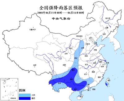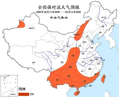 中新網(wǎng)6月15日電 中央氣象臺今晨六點鐘發(fā)布暴雨預報: