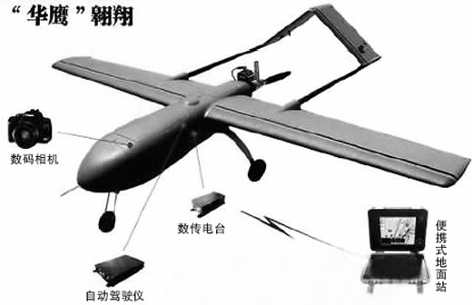 這款名為“華鷹”的無人機數(shù)次出現(xiàn)在青川、北川,對抗震救災發(fā)揮了積極的作用。據(jù)四川省測繪局的專家介紹,“華鷹”是四川省測繪局專程向國家測繪局申請派來支援災區(qū)的。“華鷹”無人機航攝系統(tǒng)通過了國家測繪局鑒定,飛機系統(tǒng)采用GPS導航自主飛行,裝備專業(yè)數(shù)碼相機,可在半徑15千米的范圍內(nèi)穩(wěn)定可靠飛行3小時,自動拍攝地面高分辨率航空影像,生成高清晰地面影像。