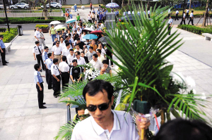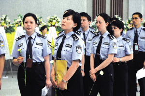 龍華殯儀館工作人員張雁琳對記者說,為了布置好追悼大會的6個分會場,她和十幾名同事今天早晨6時就趕到了殯儀館,已經(jīng)忙了4個多小時!斑@些民警平時為了維護社會治安,奉獻了很多。為他們?nèi)松淖詈笠徽舅托凶鳇c事,表達我們對他們的一片敬意。”(雍和 江躍中 潘高峰 鄒瑞玥)