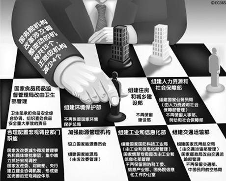 至今,國務(wù)院組成部門、直屬機構(gòu)和各部委先后上報了各自的“三定”方案,并陸續(xù)獲得通過。