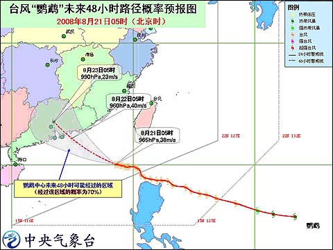 8月21日05時臺風“鸚鵡”未來48小時路徑概率預報圖