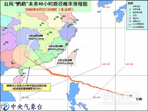 臺(tái)風(fēng)“鸚鵡”未來(lái)48小時(shí)路徑概率預(yù)報(bào)圖