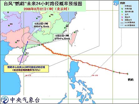 預(yù)計,臺風(fēng)中心將以每小時15-20公里的速度向偏西方向移動,強(qiáng)度逐漸減弱,將越過珠江口海域,于今天晚上9時前后再次在珠江口西岸地區(qū)登陸。