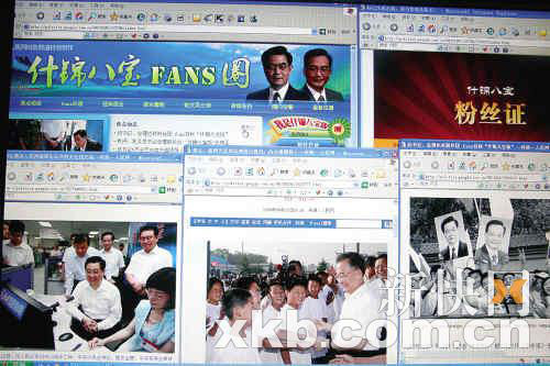 “祝賀您,成功加入‘什錦八寶粉絲圈’!弊蛉罩形,家住天河車陂的陳女士輕點鼠標,如愿以償獲得一本由人民網生成的胡錦濤和溫家寶的注冊粉絲證!翱偹阏业浇M織了!”在汶川地震后被總書記和總理機場“會師”照片深深感動的陳女士,像追星一樣在網絡上搜尋著“濤哥”和“寶寶”的消息。后來她發(fā)現(xiàn),網上和她懷著一樣興趣的人還真不少,一些人竟自發(fā)組成了后援粉絲團。