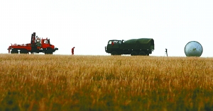 這片草場(chǎng)大體位于“神五”、“神六”著陸的位置之間,距二者均約10公里。記者在現(xiàn)場(chǎng)看到,模型傾斜倒在草場(chǎng),身穿“中國(guó)航天搜救”制服的人員證實(shí),這是“神七”主著陸場(chǎng)最后一次大型綜合演練。