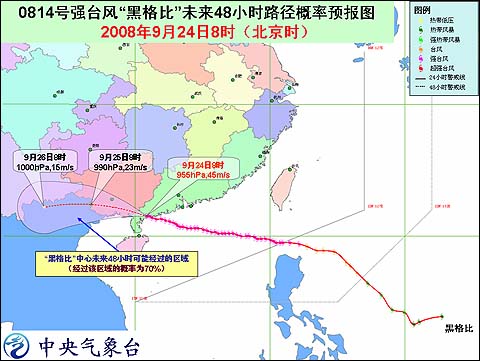 “黑格比”24日08時未來48小時路徑概率預報圖