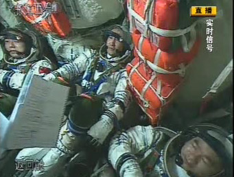 身穿乳白色航天服,仰坐在艙內(nèi)的三名航天員,在“神七”發(fā)射后,一直處于輕松自信的狀態(tài)。這點(diǎn)在他們面帶笑容的臉上,以及時(shí)不時(shí)拿起身邊的指令小冊子閱讀就可窺見。