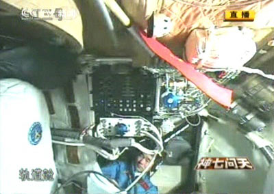中新網(wǎng)9月26日電 北京時間9月26日10點(diǎn)20分,“神舟”七號航天員翟志剛和劉伯明開始在飛船軌道艙進(jìn)行軌道艙狀態(tài)檢查和艙外航天服的組裝與測試等工作。據(jù)中央電視臺消息,目前,“飛天”艙外航天服已組裝完畢。