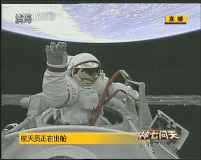 四點(diǎn)四十四分,翟志剛開(kāi)始出艙進(jìn)入太空,他向地面報(bào)告:“神舟七號(hào)已出艙,身體感覺(jué)良好,向全國(guó)人民,向全世界人民問(wèn)候。” 潔白的航天服上,鮮艷的五星紅旗格外醒目。