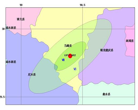 20時(shí)46分50.0秒,當(dāng)雄縣(北緯29.8,東經(jīng)90.3)再度發(fā)生3.9級(jí)余震,拉薩市有輕微震感。