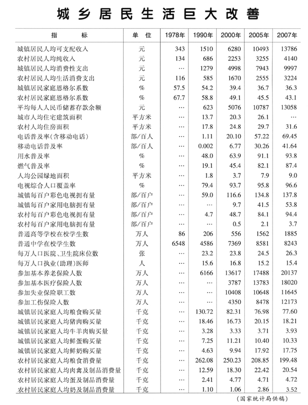 中國(guó)30年改革開(kāi)放成就統(tǒng)計(jì)表