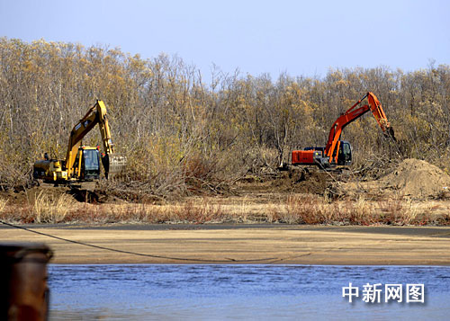 記者14日下午和晚上又再次來到黑瞎子島對岸的通江口和小河子村。晚間江面起了小霧,不過在通江口仍可以看到對岸的黑瞎子島,當(dāng)時正有一批中方人員在黑瞎子島上新的邊界線附近進(jìn)行施工,但是他們具體在做什么還不太清楚,直到晚上五時許,這些人員才乘船離開黑瞎子島。