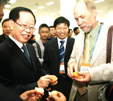 國際柑橘大會首次在漢召開,農(nóng)業(yè)部副部長現(xiàn)場推薦湖北柑橘,省農(nóng)業(yè)廳果品辦主任李傳友透露“不必驚慌,很多國家的不同地區(qū)都發(fā)生過蛆柑事件!弊蛉障挛,由國際柑橘學會主辦,中國柑橘學會和華中農(nóng)業(yè)大學承辦的第十一屆國際柑橘大會開幕,600余名來自世界各國的柑橘專家參加了會議。