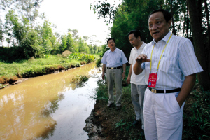 三位暗訪的省人大代表在排放口仔細(xì)觀察。“這里肯定存在偷排污水現(xiàn)象,否則怎么會淤積這么厚的黑泥?”省人大環(huán)資委副主任委員潘大林說。他還指給記者看,排放口上游河岸兩邊是黃泥,到下游就變成黑色,水面也開始漂浮油污。
