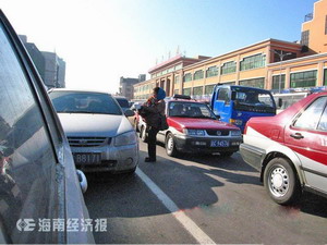 記者昨日下午在海口南大橋處看見,紅燈亮起時(shí),一名殘疾男子趕緊走上馬路中央,向等候綠燈的司機(jī)討錢,當(dāng)車輛準(zhǔn)備行駛時(shí),又匆忙跑到馬路邊上。