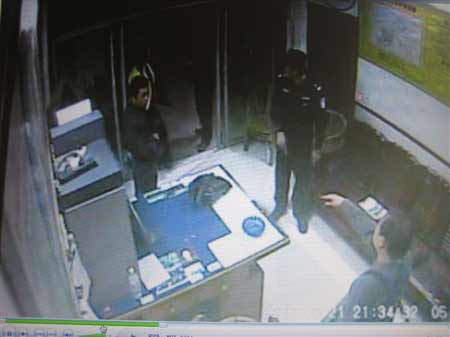 此時(shí),站在監(jiān)控設(shè)備前的陳紅發(fā)覺到監(jiān)控設(shè)備的存在,四處尋找監(jiān)控設(shè)備導(dǎo)線。當(dāng)他找到電源插頭后,死勁將插頭拔下,視頻錄像立即中斷。此后,檢查站用攝像機(jī)拍攝的景象一片狼藉。