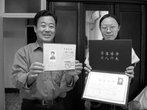 父親和女兒的“兩代”大學(xué)畢業(yè)證