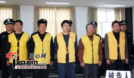 五名被告正在接受庭審,左一為塔城市市委原副書記呂篤功。