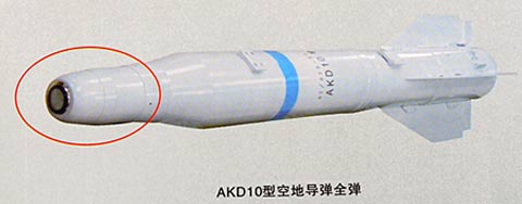 國產(chǎn)新型AKD-10空地導(dǎo)彈 圖片來源:東方網(wǎng)