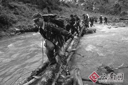 6時31分,飛機抵達了目的地——西舍路鄉(xiāng)新華村委會大光山。為了讓直升機容易發(fā)現(xiàn)目標,大家在安置點上燃著濃煙。看到飛機降落,村民們紛紛趕來搬運物資,記者也連忙四處尋找本報兩名徒步進入災(zāi)區(qū)記者的身影,因為此前受斷電的影響,本報和他們已經(jīng)失去聯(lián)系。遺憾的是,短短6分鐘內(nèi),物資被搬運一空,直升機馬上就要返回,仍找不到記者的身影。此時,該村村民徐竹林因頭部受傷在丈夫的陪同下,也登上了飛機準備到楚雄就醫(yī)。在飛機上,徐竹林告訴記者,頭是因為房子垮塌時被砸傷的。昨晚,前方終于傳來好消息:兩名記者呂世成和付興華也分別安全撤出災(zāi)區(qū),并連夜發(fā)稿。