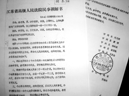 24年前,1984年4月,因?yàn)樽髌泛献鞫l(fā)的電影故事片《十六號(hào)病房》編劇署名之爭(zhēng),在雙方“筆墨官司”糾纏了八九個(gè)月之后,上海電影制片廠文學(xué)部編輯姜思慎以侵犯著作權(quán)之訴,將小說(shuō)《遺忘在病床上的日記》的原著作者喬雪竹告上了法庭。該案成為我國(guó)建國(guó)以來(lái)首例著作權(quán)糾紛案,一時(shí)引起了中外輿論的高度關(guān)注。
