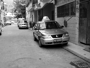 在三亞一小區(qū)巷道內(nèi),一輛出租車(chē)未出車(chē)。