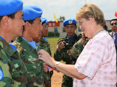 洛伊女士熱情贊揚了中國對聯(lián)合國維和事業(yè)的支持。她說,自2004年3月第一支部隊抵利以來,中國維和部隊為利和平進程和人民生活改善做出了重大貢獻。這充分顯示了中國政府和人民對聯(lián)合國在利維和行動的支持,積極幫助利實現(xiàn)和平、安全、復(fù)興與發(fā)展。她高度贊賞中國維和部隊的出色表現(xiàn),稱贊中國三支維和分隊的領(lǐng)導(dǎo)“指揮有方”,中國軍隊是“中國的驕傲”。她還對中國工兵分隊在任務(wù)期即將結(jié)束之際仍愉快受領(lǐng)任務(wù),修建連接利東南兩州首府要道上的橋梁表示感謝,相信他們一定能出色完成任務(wù),造福于利人民。洛伊最后勉勵維和官兵為了實現(xiàn)和鞏固世界和平與安全而繼續(xù)努力。