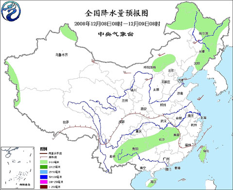 2008年12月8日8時—12月9日8時全國降水量預(yù)報(bào)圖