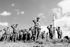 今朝長纓在手,敢縛出海蛟龍。1996年3月,在我國東南沿海舉行的那場規(guī)模宏大的軍事演習(xí)中,一枚枚威武挺拔的新型導(dǎo)彈,在群山環(huán)抱中起豎聳立!包c火!”隨著命令傳出,驚雷搖撼大地,閃電劃破長空,一枚枚導(dǎo)彈呼嘯著飛向預(yù)定目標(biāo)……顯示了中國人民捍衛(wèi)國家主權(quán)和領(lǐng)土完整的堅強(qiáng)決心,展示了第二炮兵的軍事打擊能力。