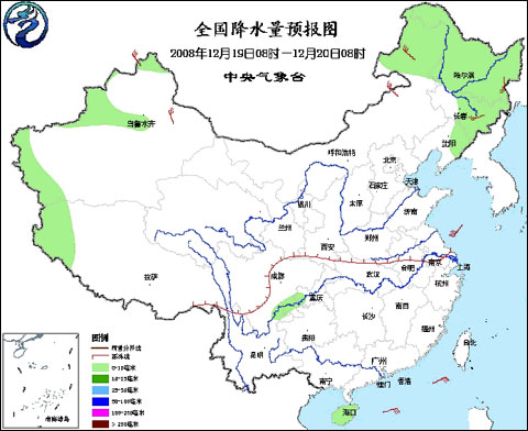 2008年12月19日8時—12月20日8時全國降水量預(yù)報圖