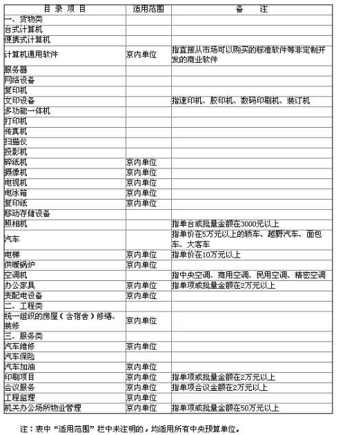 中央預(yù)算單位2009-2010年政府集中采購目錄及標(biāo)準(zhǔn)