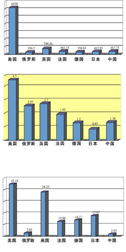 中國國防費(fèi)總額、軍人人均數(shù)額,仍低于世界一些主要大國的水平。2007年,中國年度國防費(fèi)相當(dāng)于美國的7.51%、英國的62.43%。軍人人均數(shù)額是美國的4.49%,日本的11.3%,英國的5.31%,法國的15.76%,德國的14.33%。從國家國防負(fù)擔(dān)的相對比例看,中國國防費(fèi)僅占國內(nèi)生產(chǎn)總值的1.38%,而美國占4.5%,英國占2.7%,法國占1.92%。