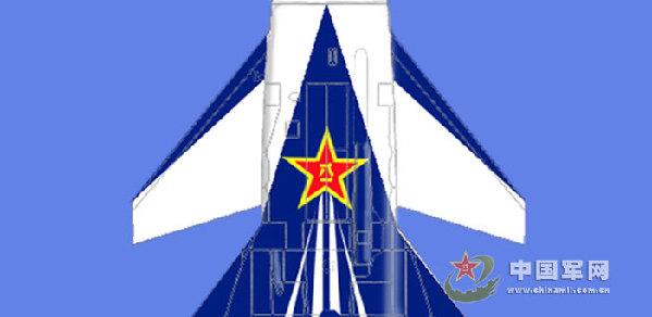 殲-10表演機(jī)軍徽由紅黃兩色組成,“八一”和五角星的邊框?yàn)辄S色,其余部分為紅色,噴涂在機(jī)身腹部,共1處(見(jiàn)圖5、6)。