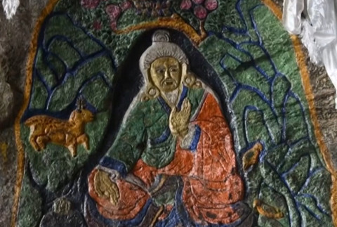 頭戴黃色尖頂帽,雙手做轉法輪印,雙手生有兩莖蓮花,花朵開在左右肩膀上,左邊是寶劍,右邊是經書……如果你在唐卡中看到這樣的形象,不用懷疑,這就是宗喀巴的畫像。