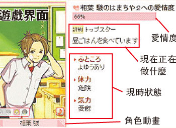 為勾起會(huì)員“青澀的初戀感覺”,整個(gè)虛擬環(huán)境設(shè)定在某所中學(xué)校園里。用戶登入之后,可以從4名卡通風(fēng)格的男角中,選一人作為“網(wǎng)上男朋友”,在校園內(nèi)談情說愛。4個(gè)男生各有特色,包括高材生型、陽光型、壞男孩型和教師型。這些虛擬男友由多名男聲優(yōu)配音,用家如果想和“男友”增進(jìn)感情,就要多登入該網(wǎng),然后通過對(duì)話和其它虛擬活動(dòng),來令“愛情度”增加。