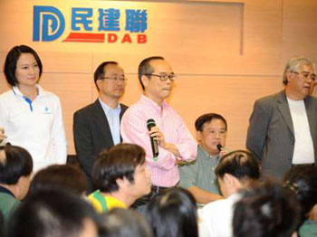 7日晚約300名雷曼苦主出席民建聯(lián)舉行的申訴大會,并商討特區(qū)政府提出的銀行回購債券方案,希望可以尋找理性的方法維護(hù)雷曼苦主的權(quán)益。民建聯(lián)副主席劉江華、立法會議員陳鑒林、李慧瓊、黃定光出席申訴大會。
