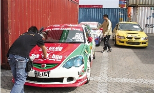 參賽房車經(jīng)九澳貨柜碼頭運(yùn)到。(圖片來源:澳門日報(bào))